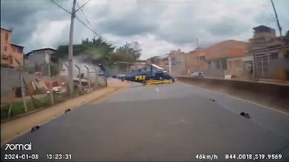 Un helicóptero de la Policía Federal de Carreteras de Brasil que llevaba a bordo a una persona herida en un accidente de tránsito se desplomó sobre una carretera en Belo Horizonte.