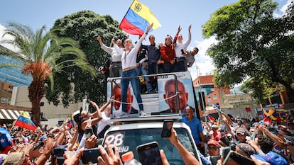 La oposición ha apalancado la convocatoria con los venezolanos en exterior. Están planificados encuentros en más de 350 ciudades que han sido lugar de destino de los más de 7,5 millones de venezolanos que se han visto obligados a abandonar su país en los últimos años por la profunda crisis económica y humanitaria por la que ha pasado su país. La mayoría de ellos son opositores. Para lograr organizar las marchas, esta semana la líder María Corina Machado ha tenido una intensa jornada de directos de Instagram y entrevistas con influencers venezolanos en todo el mundo para usar sus plataformas digitales para amplificar su llamado en el exterior, donde busca mover más apoyos que presionen para que Maduro acepte iniciar una negociación para una transición pacífica. En todos los estados de Venezuela también se ha llamado a la gente a concentrarse. La movilización que logre también será una medida del impacto que ha tenido la política de persecución y represión desplegada en las últimas semanas, en las que se han denunciado varios episodios en los que la policía revisa los teléfonos de la gente en la calle en busca de videos de protestas o contenido que puedan consideran que es contrario al Gobierno. Muchas ciudades del país, incluida la capital, no se han recuperado todavía del sopor de la jornada electoral y sus días de furia siguientes. Hay una especie de toque de queda no decretado que lleva a los negocios a cerrar más temprano y a la gente a evitar estar en la calle. Los ciudadanos dicen tener miedo. Se espera, sin embargo, que Machado esté en la concentración como lo estuvo en la última que se hizo en la avenida principal de Las Mercedes. Desde hace dos semanas, informó que se había resguardado, al igual que Edmundo González Urrutia, que no ha hecho apariciones públicas junto con sus votantes desde el 30 de julio.