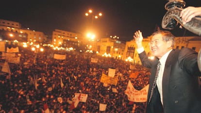 Mandó durante 10 años, durante los cuales se enfrentó a las guerrillas de izquierdas con métodos que le valdrían una larga condena por violación a los derechos humanos. En su primera elección presidencial, a la que se presentó como un absoluto desconocido, venció en segunda vuelta al novelista Mario Vargas Llosa, quien después ganaría el Premio Nobel de Literatura. Al Fujimori presidente le sobraba la institucionalidad y la burocracia, que consideraba tediosa y paralizante, y por ello dio un autogolpe de Estado en 1992. Con el respaldo de las Fuerzas Armadas, disolvió el Parlamento y gobernó por decreto durante unos meses. Tras la esquina le esperaba el destino trágico de los presidentes de su país: la tumba o la cárcel. En medio de unos vídeos en los que se explicitaba la corrupción de su Gobierno, viajó a Tokio y desde allí presentó su dimisión desde el fax de un hotel. El Congreso no aceptó la renuncia y votó su destitución bajo una figura jurídica llamada “incapacidad moral permanente”. Una deshonra reservada para los mandatarios locos o incompetentes.