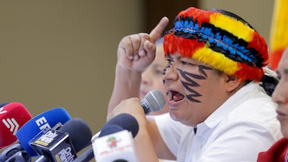 Efraín Fueres, un artesano kichwa de la comunidad andina de Cuicocha-Inguitgzala, dejó atrás su casa, los telares, la chacra, para sumarse al paro nacional convocado por la Confederación de Nacionalidades Indígenas del Ecuador (Conaie) hace una semana. Tenía 46 años, dos hijos pequeños, y una convicción que lo llevó a caminar durante horas por los páramos del norte de Cotacachi. La última imagen que se tiene de él es la de un cuerpo que cae en la carretera E35, la vía que atraviesa las montañas y conecta con Quito, tras recibir tres disparos mientras huía de la represión militar el domingo en la mañana.