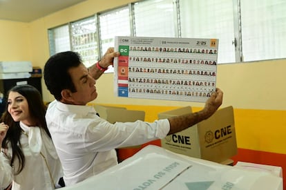 Votantes en los comicios generales en Honduras donde se ha votado por la presidencia, 128 escaños en el Congreso y 20 representantes al Parlamento Centroamericano.Délmer MembreñoEl presidente de Estados Unidos, Donald Trump, ha intentado influir en el resultado de las elecciones al dar su apoyo al candidato conservador Nasry Tito Asfura, del Partido Nacional.Délmer MembreñoEn estos comicios, los hondureños renovarán prácticamente toda la estructura de poder político del país.Délmer MembreñoEl candidato a la Presidencia de Honduras por el Partido Nacional, Nasry Asfura, deposita su voto en una urna, este domingo.