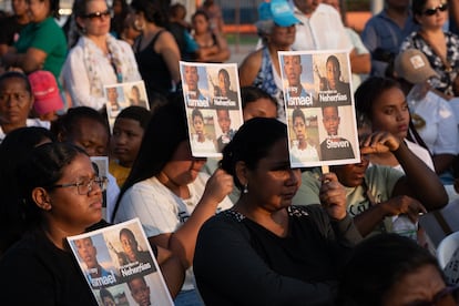 El asesinato de los niños ha vuelto a ocupar su lugar en la actualidad del país. Tras la marcha, la expectación es máxima ante la sentencia que esta semana —según está previsto— se dictará contra los 17 militares acusados de la desaparición forzada de los menores. Los uniformados se enfrentan a penas de 34 años y ocho meses, como ha solicitado el fiscal encargado del caso. Este caso podría marcar un antes y un después para en país profundamente conmocionado por el aumento de la violencia, también por parte de los militares, a quienes se les atribuyen al menos 31 desapariciones forzadas en los dos años de gobierno de Daniel Noboa.