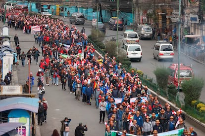 Más de 3.000 mineros de la Federación Nacional de Cooperativas Mineras de Bolivia descendieron por la mañana desde la ciudad de El Alto hasta la sede de Gobierno, en La Paz. La marcha fue secundada por la Central Obrera Boliviana (COB), la mayor confederación sindical del país. El secretario general de la entidad, Mario Argollo, aseguró a su llegada al Palacio de Gobierno que los sectores más vulnerables serán las principales víctimas del efecto dominó que causará la subida del precio del combustible. “Tienen que gobernar para todos los bolivianos; quitaron el impuesto a las grandes fortunas y le dieron perdonazo a los millonarios. Los empresarios y banqueros no votaron por Paz, votaron las grandes mayorías, a las que ahora les están dando la espalda”, afirmó.