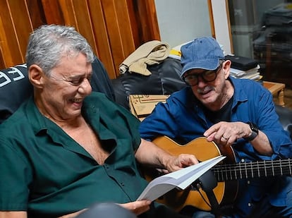 El músico y escritor Chico Buarque, uno de los grandes artistas brasileños, ha viajado a Cuba por primera vez en 34 años invitado por el cubano Silvio Rodríguez, según él primero ha desvelado este miércoles en su cuenta de Instagram junto a una foto de ambos en el Malecón con un coche clásico a la espalda. La visita “en medio del endurecimiento de las sanciones contra la isla y del agravamiento de la crisis económica y energética, es una demostración de solidaridad al pueblo y al país”, añade. Buarque aterrizó la víspera y este jueves grabarán juntos en un estudio de La Habana una de las canciones más conocidas del cubano, Sueño con serpientes.