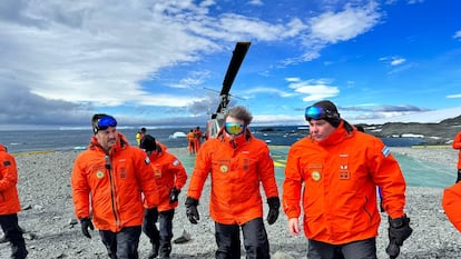 El presidente Javier Milei y el Ministro de Defensa, Luis Petri en la Base Esperanza, Antártica, este 6 de enero. Foto: Reuters | Vídeo: EPV