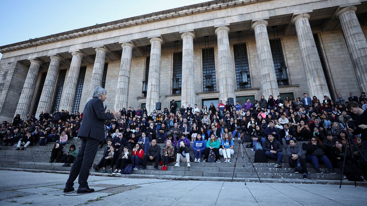 Los estudiantes de la Universidad de Buenos Aires toman clases en las calles para protestar contra los recortes