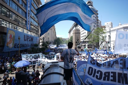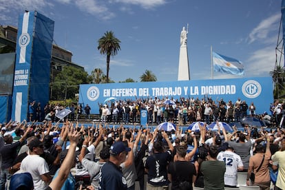 Luego hablaron los principales dirigentes de la CGT. “La reforma laboral está redactada maliciosamente a favor de las grandes corporaciones de Argentina”, dijo Cristian Jerónimo, uno de los líderes de la central. “Ya se perdieron 276.000 puestos de trabajo y 20.000 pymes [pequeñas y medianas empresas] han cerrado. ¿De qué modelo exitoso hablan?“, se preguntó.