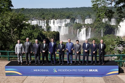 La titular de la Comisión Europea, Ursula von der Leyen, no se presentó a la cita porque Bruselas pidió in extremis más tiempo, al menos hasta enero, para convencer a Italia y tener los votos suficientes para firmar. Sí llegaron hasta esta ciudad fronteriza los presidentes de Argentina, Milei; Paraguay, Peña; y Uruguay, Yamandú Orsi. También viajó el jefe de Estado de Panamá, José Raúl Mulino, en calidad de país asociado.