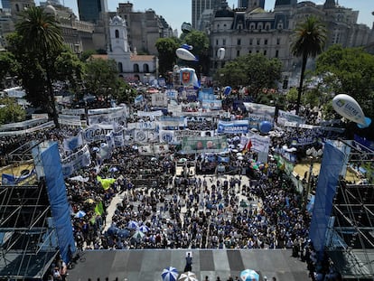 Los sindicatos argentinos protestan en las calles contra el proyecto de reforma laboral que impulsa Milei