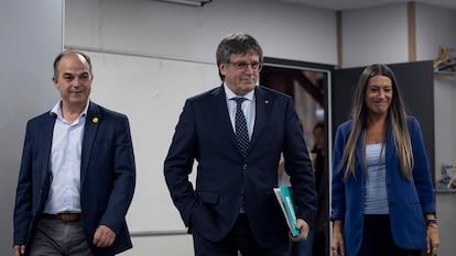 Jordi Turull, que acompañó a Laura Borràs a las puertas del juzgado, y había acompañado a Daniel Osàcar y Oriol Pujol, que después fueron condenados