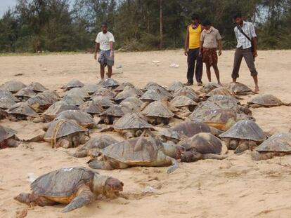 La causa son los barcos pesqueros, que faenan demasiado cerca de la costa, y estos reptiles quedan atrapados en sus redes También se han encontrados muertos dos delfines