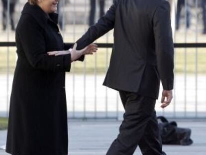 El presidente busca en Berlín atraerse a la canciller con promesas de austeridad