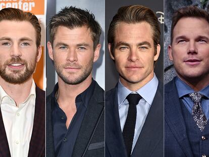 Y podríamos seguir: superhéroe cinematográfico, musculado y con pelazo, divertido, sensible y comprometido… Evans, Hemsworth, Pine y Pratt representan el epítome de galán moderno en Hollywood compartiendo molde.