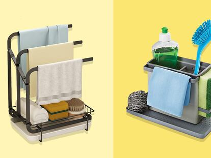 Pensados para guardar estropajos, bayetas o el lavavajillas, estos productos se pueden colocar en superficie o en el mueble debajo del fregadero