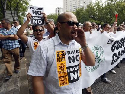 Los profesionales han lanzado petardos y botes de humo durante la marcha por la Castellana