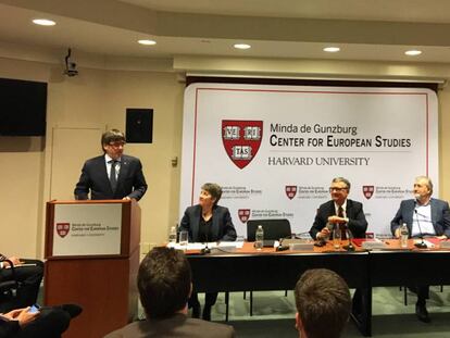 En una conferencia en la universidad, el presidente defiende la independencia de Cataluña y promete intentar dialogar con el Gobierno “hasta el muy último día”