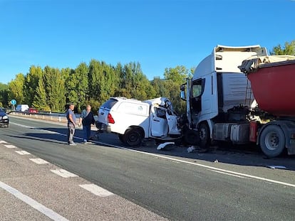 Mueren tres trabajadores de una empresa coruñesa al chocar una furgoneta y un camión en El Bierzo