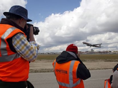 Observar y fotografiar aeroplanos es la pasión de los ‘spotters’ Las pistas de Barajas se abrieron ayer a un grupo de 150 de ellos, de 15 nacionalidades
