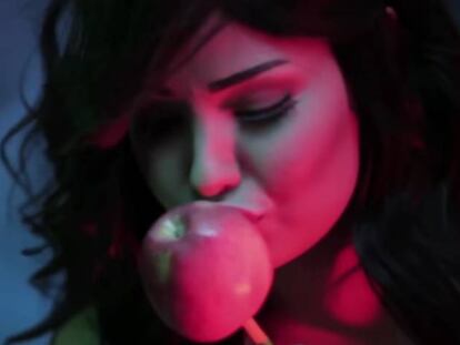 La joven artista Shyma aparece en el videoclip en lencería mientras come un plátano y un manzana y se insinúa a varios hombres