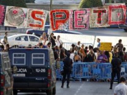 Doble protesta ante el Congreso y en los juzgados de plaza de Castilla Bono pide a los manifestantes que oigan a los políticos por "educación" e "inteligencia" Rubalcaba, dispuesto a escuchar, pero no a "regalarle los oídos" al 15-M