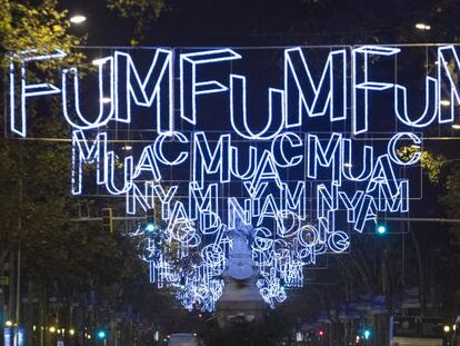Una instal·lació de l’artista Perejaume al carrer del Carme escrita amb bombetes planteja el tema del text a l’espai públic