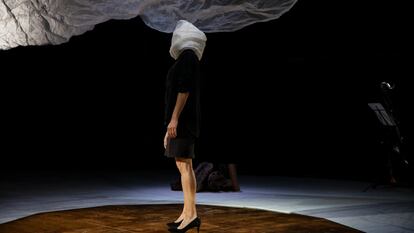 Todo se perdona ante la belleza estática de algunas de las escenas posteriores y la pericia del Niño de Elche, capaz de entreverar la saeta con el canto difónico mogol. Es hermosa el aria que canta en falsete y su imitación mimética de los movimientos mecánicos de los títeres que manipula Marquerie. El trabajo físico de Lola Jiménez es volcánico, sin erupción. Emilio Tomé tasa con exactitud cada palabra, cada acto. Se palpa demasiado el esfuerzo que Fernanda Orazi hace para intentar vibrar en la longitud de onda del espectáculo. La flautista Clara Gallardo y el clarinetista Joaquín Sánchez, comodines, vuelan ligero.