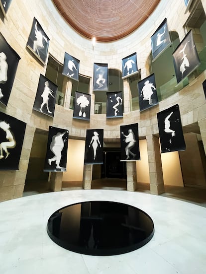 Cuerpos develados ocupa el espacio central del panóptico del MARCO. Se trata de una serie de 32 retratos de personajes vinculados a la fotografía latinoamericana. Graciela Iturbide, Paz Errázuriz, Pablo Ortiz Monasterio, Joan Fontcuberta, así como galeristas, gestores culturales o coleccionistas, levitan en el espacio, transfigurados en formas blancas y luminosas tras dejar su huella directamente, desde distintas posiciones, sobre el papel fotosensible en un espacio totalmente oscurecido. “Con la idea en mente de que el edificio había sido, en otros tiempos, una prisión, me vino a la cabeza uno de los grabados de Gustave Doré realizados para ilustrar la Divina comedia”, explica el fotógrafo. “De ahí surgió la instalación como la metáfora de una salida simbólica de la prisión, del desequilibrio y la violencia, hacia un ámbito de luz, cultura y vínculos más amables, constructivos y equilibrados”.