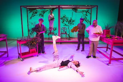 Otro elemento destacado de la puesta en escena es el color. Sobre un espacio escenográfico diáfano diseñado por Monica Borromello, con un ciclorama como elemento central, la iluminadora Olga García proyecta fucsias, verdes, azules y naranjas como reflejos del ánimo que predomina en cada momento.