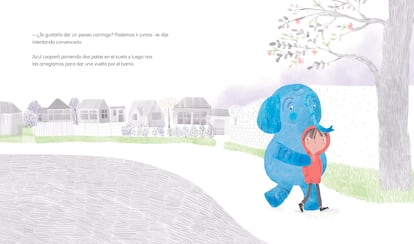 Los hay explícitos desde el título: Mi cuerpo es mío (NubeOcho), de Lucía Serrano, Yo voy conmigo (Thule), de la propia Díaz Reguera, ¿Qué te preocupa? (Picarona), de Molly Petter y Sarah Jennings o la colección Cuentos para sentir, publicada por SM. Otros, en cambio, prefieren apostar por metáforas y sutileza: Un lobo llamado Fire (Errata Naturae), de Rosanne Parry, está basado en la historia real de un animal, pero la inseguridad que retrata también abunda en las manadas humanas; igual que cuesta más tener autoestima cuando te repiten Orejas de mariposa (Kalandraka),de Luisa Aguilar y André Neves; e Iveliz lo explica todo (de Andrea Beatriz Arango, editada por Vintage) porque siente que nadie la escucha, y también porque es como lidia con sus problemas de salud mental. El miedo se convierte en La cosa negra (SM), de Roberto Aliaga, o un perro del mismo color, en el libro de Levi Pinfold (Barbara Fiore); y la ansiedad asume el aspecto de El elefante que perdió su ojo (Kalandraka), de Boniface Ofogo y Marc Taeger, o de otro paquidermo imposible de apartar una vez que se coloca, en Mi elefante Azul, de Melinda Szymanik y Vasanti Unka. Cuando le preguntan: “¿Podrías quitarte?”, contesta