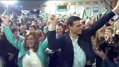 El líder socialista va vaticinar una forta victòria de Susana Díaz el proper 22 de març i del PSOE en les eleccions generals de finals d'any. “Forgem Susana, tu i jo, una nova aliança entre San Telmo i la Moncloa”, va assenyalar el líder socialista fent referència a les seus dels governs autonòmic i nacional, respectivament. No va haver-hi, no obstant això, resposta de la presidenta andalusa a aquest fil conductor entre un govern socialista andalús i un altre a Espanya presidit per Pedro Sánchez.
