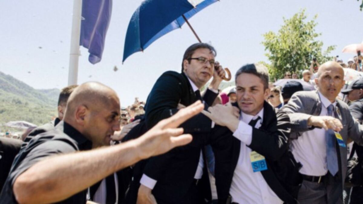 Els manifestants en un primer moment han increpat el primer ministre serbi, però la situació ha escalat fins que ha començat el llançament d'objectes, entre ells pedres i ampolles d'aigua. Vucic s'ha vist obligat a entrar de nou al seu vehicle oficial protegit per paraigües oberts.
