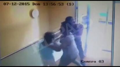Els dos assaltants esperaven a fora i abans que es tanqués l’accés van entrar al portal sorprenent la víctima per l’esquena i emprant una violència desmesurada. Un dels agressors agafa la víctima per coll mentre l’altre vigila la porta. El principal agressor la sacseja i l’altre aprofita per sostreure-li alguna cosa de la bossa. L’agressió només dura uns segons, i al final llancen la dona a terra i abandonen el lloc corrent abans que qualsevol testimoni pogués interceptar-los.