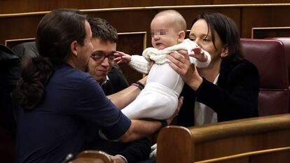 La diputada de Podem Carolina Bescansa ha entrat a la Cambra baixa amb el seu fill