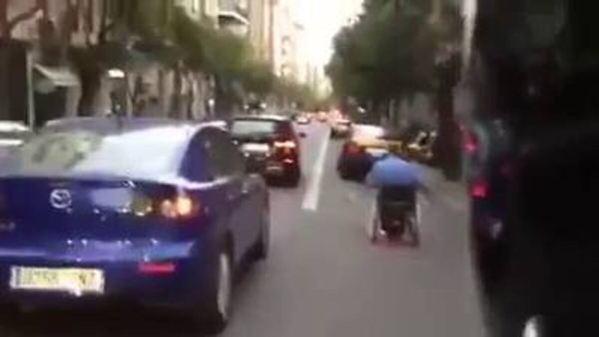 Fa uns dies que aquest vídeo s'ha fet viral per les xarxes socials i acumula ja milers de visites. En ell es veu el mai vist: un home baixant a tota velocitat amb una cadira de rodes pel carrer Muntaner de Barcelona. Al principi, es veu com circula pel carril bus, però quan s'apropa massa al taxi del davant, no dubta a avançar-lo. A ell i a dos cotxes més.