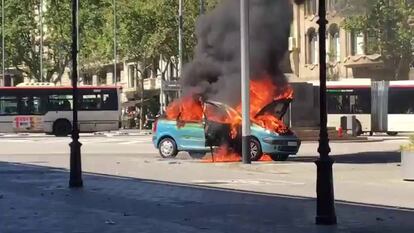Arde un coche en Diagonal con Paseo de Gràcia pic.twitter.com/S13QSgGc4E