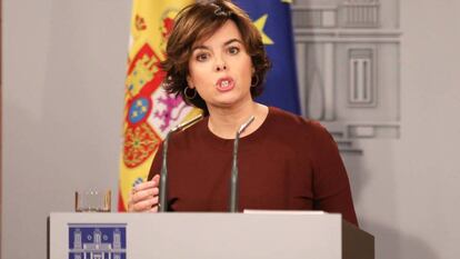 D'altra banda, la número dos del Govern espanyol ha recordat l'oferta de diàleg dins de la llei que li ha fet Mariano Rajoy a Carles Puigdemont. Dimecres el president del Govern central li va enviar un requeriment al de la Generalitat, que ha d'aclarir abans de dilluns a les 10.00 si dimarts, 10 d'octubre, va proclamar la independència de Catalunya. En el cas que hagi estat així, l'Executiu central li dona fins dijous a les 10.00 per rectificar i restaurar l'ordre constitucional. Si no, adverteix la comunicació que signa Rajoy, s'activarà “de manera immediata al Senat” l'article 155 de la Constitució.