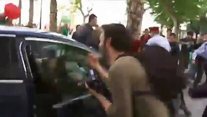 El punt àlgid es va produir sobre les 20.30, un cop va finalitzar l’acte. Durant uns 10 minuts, calcula la fiscal, aquest grup de persones “va impedir la sortida” del cotxe en què viatjaven Montoro i Sánchez Camacho. A banda d’insultar-los —”us matarem, peperos cabrons”—, els assistents “van arribar a colpejar el vehicle amb puntades i cops amb les mans” i van tirar “ampolles i pedres” al cotxe.