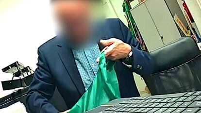 En les imatges es veu primer com un dels homes, vestit amb un polo Lacoste i pantalons de pinça, vigila les oficines. És a la vista de tothom i fa veure que parla per telèfon, mentre diverses persones surten del seu objectiu, i van cap a l'ascensor. En la següent escena ja és dins del local, que va regirant sense presses. Al cap de poca estona, li obre la porta al seu camarada, que apareix en escena vestit amb camisa i americana. Aquest també es posa a rebuscar a la caça de qualsevol cosa de valor, també amb parsimònia, sense ni tan sols prendre la precaució de posar-se guants.