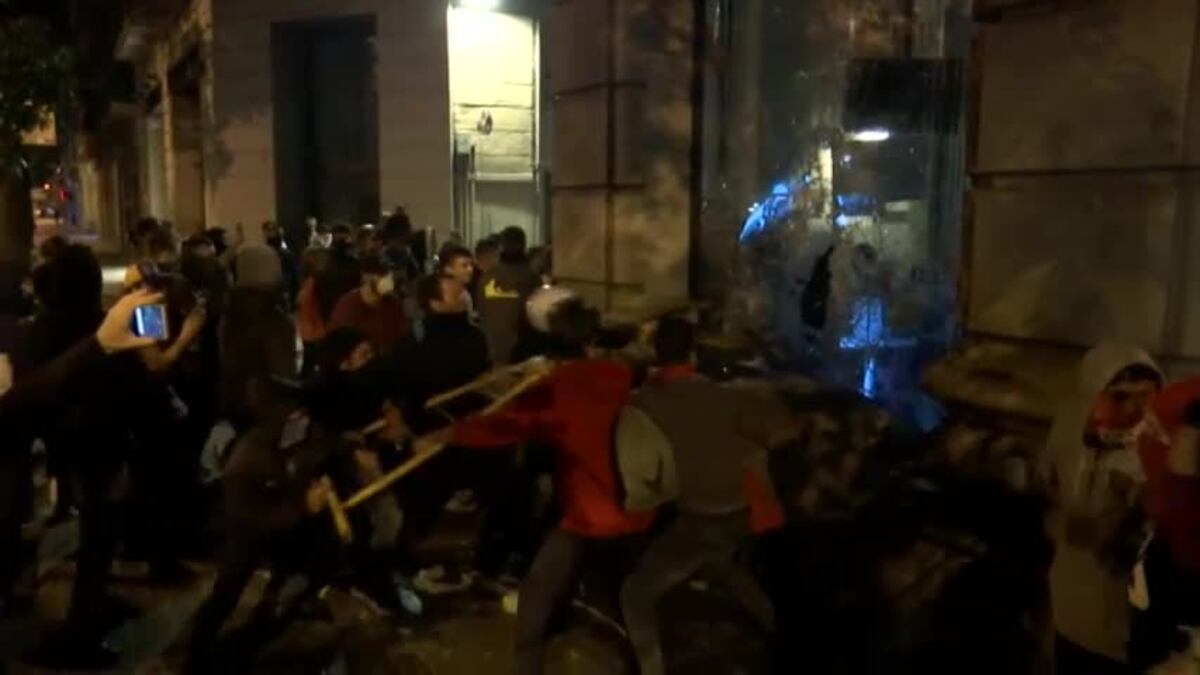 Aquesta botiga de roba esportiva, al centre de Barcelona, és un dels comerços que han estat saquejats aquests dies durant els disturbis que es repeteixen cada nit a la ciutat des que es va conèixer la condemna als líders del procés. Ahir a la matinada, quan les càmeres s’havien apagat i la policia s’havia replegat, un grup d’encaputxats va aconseguir aixecar la persiana metàl·lica de l’establiment, va rebentar la porta de vidre amb un martell i es va emportar el que va poder. El vídeo que va gravar un skater que passava per allà mostra dos homes emportant-se totes les dessuadores que els cabien entre els braços.