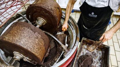 Quan el cacau es va fer popular a Catalunya, dues de les nissagues més conegudes de la xocolata eren Juncosa (des de 1837) i Amatller (des de 1797). La primera va desaparèixer però la segona segueix despatxant xocolata després que la comprés una altra històrica del sector, Simon Coll, elaboradors des de 1840. Al capdavant ara hi ha Maria Coll, sisena generació, però Xavier Coll, el seu pare, tampoc ha deixat el timó. “Nosaltres sempre hem fet bean to bar, sempre hem treballat a partir de la fava”, explica sorprès pel nou moviment. La xocolata era cosa de les classes benestants fins que a mitjans del segle XIX es va popularitzar amb la mecanització, relata. Amb els molins i el vapor s’aconsegueix abaratir el procés de fabricació i fer-la més accessible. A l’Espai Xocolata, a Sant Sadurní d’Anoia, tenen un centre de visites on descobrir com es fa la xocolata i la seva història.