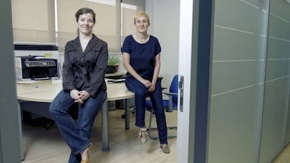 Pilar Guerrero, de 36 años, se lanzó a la aventura empresarial hace tres años. La despidieron justo después de su permiso de maternidad. “A veces tienes que verte en la encrucijada para dar el paso”, dice. Cobró toda la prestación de desempleo junta y vio cumplido su sueño de montar una agencia de comunicación, pero las divergencias con su socio le han llevado a fundar Quántica Comunicación, con Isabel Corell, de 35 (derecha). Desde octubre, están en el vivero de empresas del Ayuntamiento de Madrid en Vicálvaro, donde por 350 euros al mes disponen de un despacho con todos los servicios y asesoría. Tienen un empleado. Llevar adelante un negocio “es duro, pero más duro es ser agricultor” como sus padres, sentencia Corell. “No lo cambio por nada. Para atrás, ni para coger impulso”, contesta Guerrero.