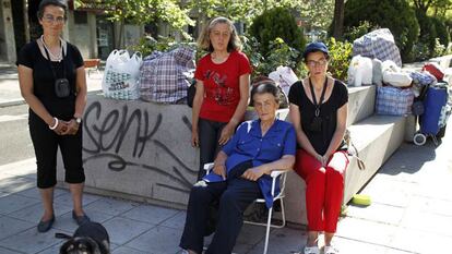 Su intención, dicen, es alquilar un piso, pero con sus ingresos —la pensión de viudedad de 600 euros de Carmen, la de invalidez de 320 de Antonia y los 250 euros que saca Aurora limpiando porterías— han calculado que solo pueden permitirse pagar 400 euros mensuales. “Porque también hay que comer, vestirse... Juntando nuestros sueldecillos podemos vivir, pero por más que miramos no encontramos nada barato donde quepamos”, dice Rosa, que hace poco perdió su empleo cuidando a una anciana. El Ayuntamiento les ha dado 1.200 euros como ayuda al alquiler. “Un parche”, según Rosa. Y esperan respuesta a una solicitud de vivienda que presentaron en el Ivima. Mientras tanto, siguen en la calle.