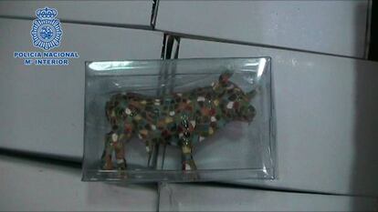La Policía Nacional se ha incautado de más de 80.000 productos falsos destinados al turismo en dos naves industriales de Fuenlabrada y ha detenido a dos individuos de nacionalidad china como presuntos autores de un delito contra la propiedad industrial. Entre los efectos recuperados en sendas naves de los polígonos de Cobo Calleja y Los Gallegos destacan miles de llaveros, abridores e imanes de porcelana tipo Gaudí, cuyo valor económico podría superar los 317.000 euros.
