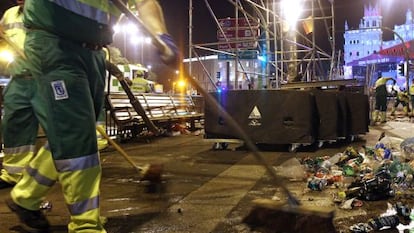 En el resto de plazas el descenso también fue notable: un 40% menos en los bares de Callao, un 45% en la Plaza del Rey, un 20% en Chueca y un 25%en la calle Pelayo. “El número de asistentes ha bajado un 10%, pero esa reducción no se corresponde con las pérdidas”. Santamaría tiene muy claro el porqué. La venta ambulante de cerveza, los llamados lateros, y el botellón.