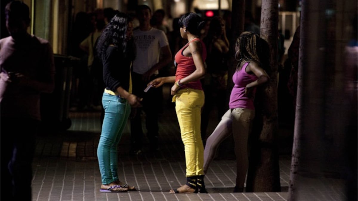 Las tres prostitutas, de origen subsahariano, con vaqueros y camisetas de colores vivos, se separan del árbol que les sirve de apoyo en sus largas noches de trabajo, delante de un sex shop en la parte baja de La Rambla de Barcelona. Un grupo de turistas borrachos se acerca. Las mujeres no dudan en abordarlos y los halagan con un “hola, guapos”. Una de ellas, más atrevida, pone la mano en la entrepierna a uno, mientras le susurra “papi”. Tras una pequeña charla, los visitantes deciden seguir su curso y ellas vuelven al árbol. La noche es larga.