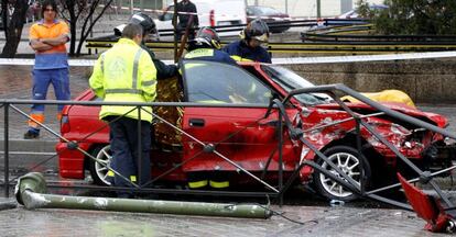 Uno de los vehículos quedó subido a la acera, mientras el otro, un Opel Astra rojo, derribó en su trayectoria un semáforo y entre ocho y diez metros de la valla que protege la acera. Parte del pasamanos entró por la junta de la puerta delantera izquierda y, tras pasar por la parte delantera del habitáculo, atravesó a la joven que viajaba detrás del conductor, Natalia Cabrera Martín. Murió en el acto a consecuencia de las graves lesiones causadas. La fallecida era vecina de Getafe e hija de profesionales del hospital de El Escorial. Será enterrada hoy en el cementerio de la localidad getafense.