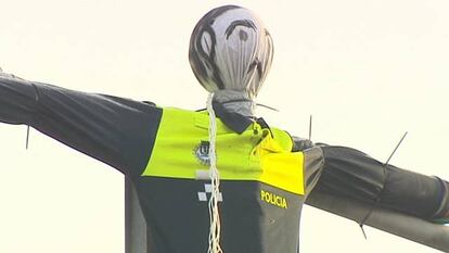 Agentes municipales cuelgan un pelele en Sol contra los recortes