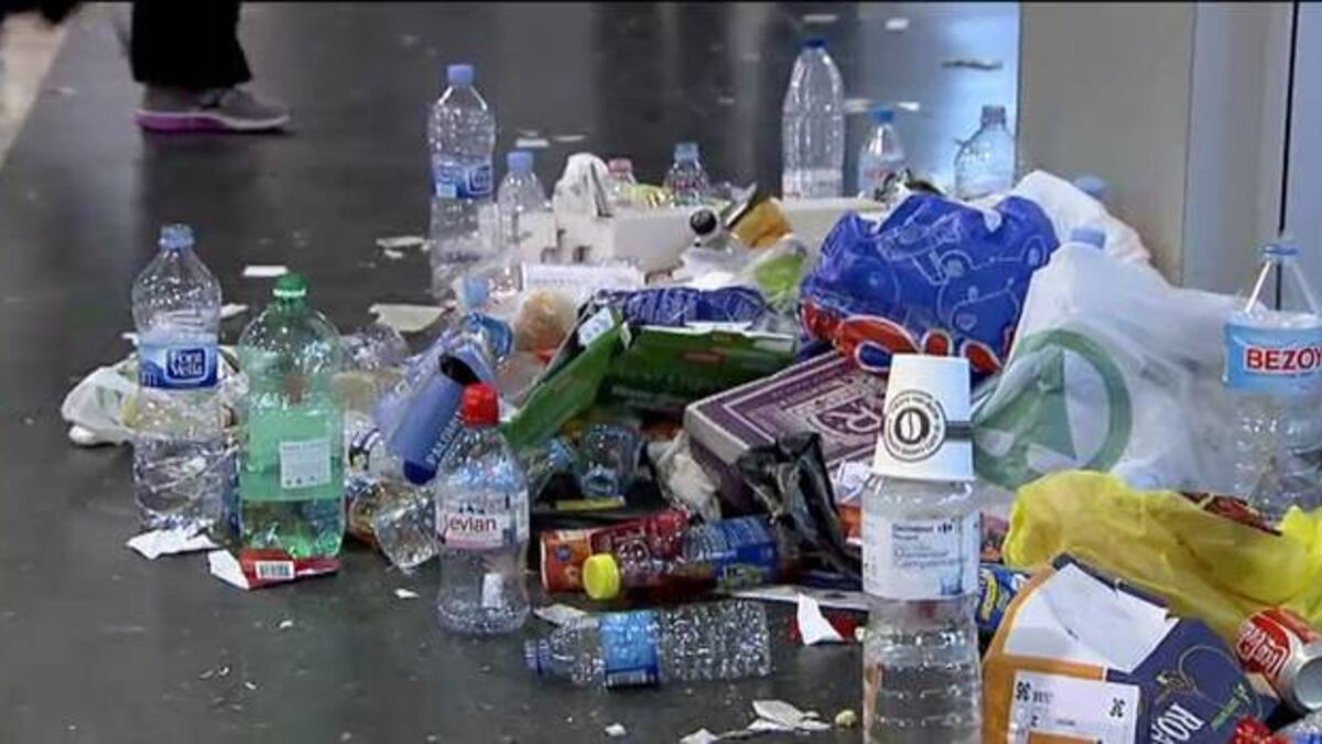 Las terminales 1, 2 y 3 del aeropuerto de Barajas siguen llenas de basura tras cinco días de huelga de los trabajadores de limpieza, aunque se están cumpliendo con los servicios mínimos: del 50% en los aseos y el 25% en las demás instalaciones. Botellas, envases de alimentos, ropa y hasta un tratado de psiquiatría en alemán se amontonan en las instalaciones del aeropuerto.