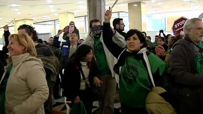 Alrededor de 300 miembros de la PAH ocupan la sede central del BBVA