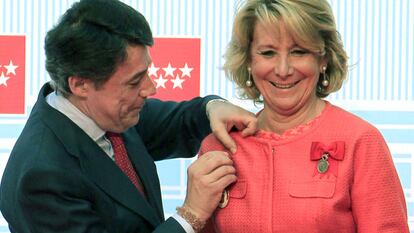 La celebración del día de la Comunidad de Madrid ha permitido a Esperanza Aguirre, expresidenta regional y líder del PP madrileño, reafirmarse en sus críticas implícitas a Mariano Rajoy por no profundizar en el recorte de la Administración. Tras ser agasajada con la Medalla de Oro del Gobierno autonómico que presidió hasta el pasado septiembre, Aguirre ha insistido en que el Ejecutivo central debe acometer más recortes del gasto público, aunque ha destacado que Rajoy “no se equivoca en nada”. "Me gusta navegar en viento contrario", ha comentado además Aguirre, haciendo referencia a su eterna vocación de voz crítica dentro del partido mayoritario.